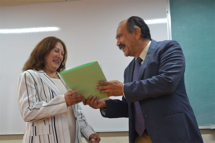 El Secretario General de la Universidad Michoacana de San Nicolás de Hidalgo (UMSNH), Egberto Bedolla Becerril, entregó a nombre del Rector de la Casa de Hidalgo, Salvador Jara Guerrero, el nombramiento como Jefa del Departamento de Idiomas, a la Contadora Pública Leticia Marisela Cantón Gasca.
