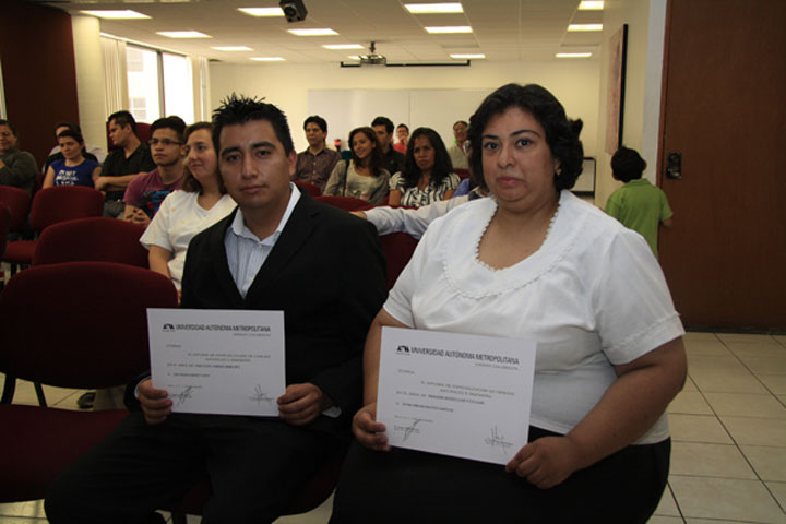 Reyna Miriam Bastida Santoyo y Luis Felipe Chávez Flores son los primeros egresados del Programa de Especialización del Posgrado en Ciencias Naturales e Ingeniería (PCNI) de la Unidad Cuajimalpa de la Universidad Autónoma Metropolitana (UAM), quienes ofrecieron un seminario, para presentar ante la comunidad, los resultados que obtuvieron en sus proyectos de investigación.