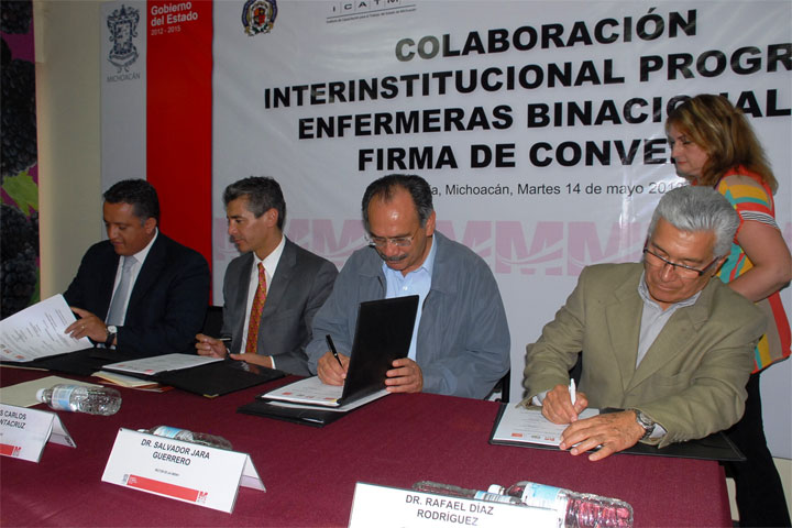 La Universidad Michoacana de San Nicolás de Hidalgo (UMSNH) en coordinación con la Secretaría de Salud en la entidad, la Secretaría del Migrante del estado y el Instituto de Capacitación para el Trabajo en el estado de Michoacán (ICATMI), signaron un convenio de colaboración interinstitucional del programa: enfermeras binacionales.