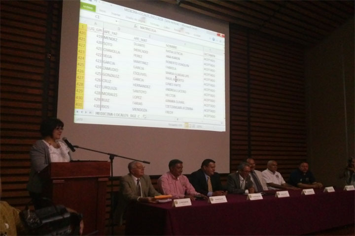 Con la presencia del notario público número 25, Salvador Hernández Mora, se llevó a cabo la presentación de los resultados del examen de ingreso para la Facultad de Ciencias Médicas y Biológicas Doctor Ignacio Chávez, así como para Nutrición.