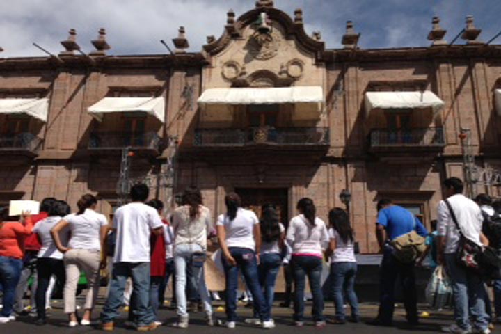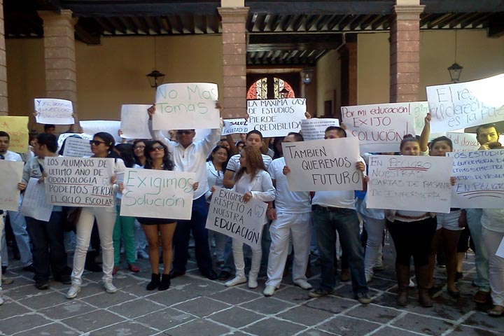 NOTICIAS 25/02/2013Frente a Palacio de Gobierno, exigen alumnos de la UM se reanuden las clases