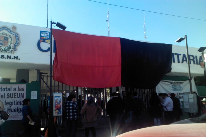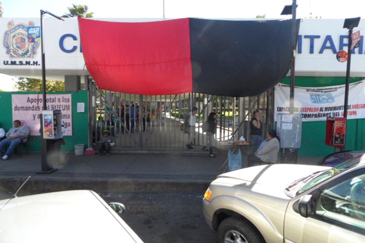 El Consejo General de Huelga del Sindicato Único de Empleados de la Universidad Michoacana (SUEUM) reiteró que la huelga continúa por lo que en ningún momento se han abierto las puertas para que se reanuden las clases.