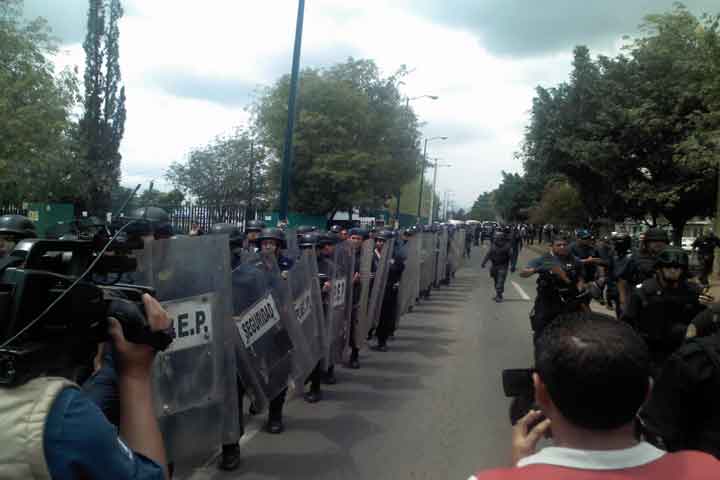 A petición de las autoridades nicolaitas, arribaron después de la una de la tarde elementos de la Policía Estatal Preventiva para resguardas la salida del grupo de paristas y es que en el lugar se mantienen los alumnos regulares, quienes pese a que se anuncio la liberación insisten en querer entrar a Ciudad Universitaria antes de ser totalmente desalojada.