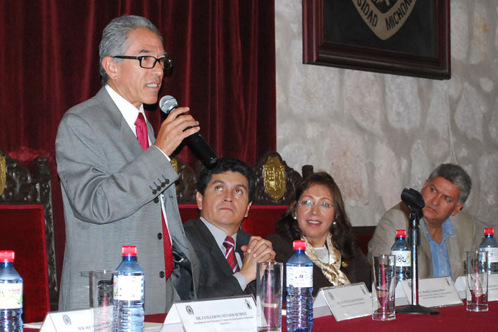 NOTICIAS 31/08/2012Jara: Por un papel más activo en las asociaciones de profesionistas en el paísEl rector de la Universidad Michoacana de San Nicolás de Hidalgo, Salvador Jara Guerrero, afirmó que las universidades públicas del país están preocupados porque haya buenas barras y colegios profesionistas en el país, lo anterior, durante su conferencia realizada en el marco del Primer Seminario Nacional sobre los procesos, mecanismos y reglamentos para la certificación profesional, que se llevó a cabo en la Facultada de Derecho y Cienc... Ver más...