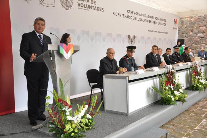 NOTICIAS 14/09/2013Morelia festeja también a "Los Sentimientos de la Nación"En el marco de la Conmemoración del Bicentenario de los Sentimientos de la Nación, este dÃa autoridades de los tres niveles de gobierno encabezadas por el Presidente Municipal Wilfrido Lázaro Medina, develaron en la Casa Natal del GeneralÃsimo Don José MarÃa Morelos y Pavón, una placa que recordará de manera perene las 23 propuestas que del documento donde se encuentra plasmada la esencia de los Sentimientos de la Nación, constituyen... Ver más...