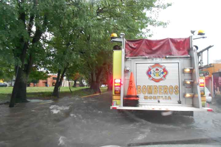 En alerta se mantiene todo el personal operativo de Protección Civil y Bomberos de Morelia ante las fuertes lluvias que se presentan esta tarde en la capital Michoacán.