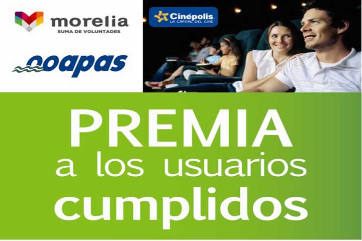 El Organismo Operador de Agua Potable, Alcantarillado y Saneamiento de Morelia (OOAPAS), inicia el día de hoy una campaña para premiar a los usuarios cumplidos en el pago de los servicios que presta la paramunicipal, como un esfuerzo conjunto de la paramunicipal con el Ayuntamiento Moreliano y Cinépolis.