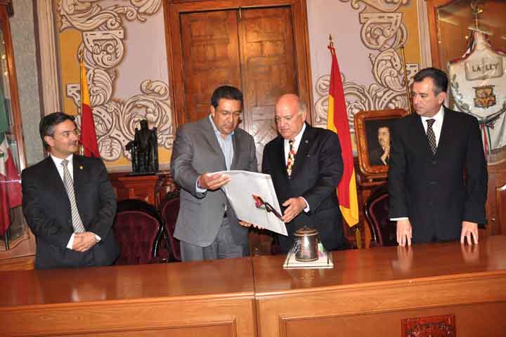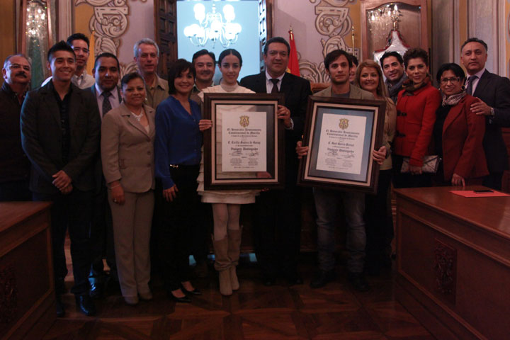 El edil capitalino Wilfrido Lázaro Medina junto al Síndico Salvador Abud Mirabent y los Regidores Sarai Cortés y Marbella Romero', reconocieron la trayectoria de los famosos actores que este día visitaron el Palacio Municipal.