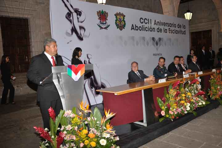 En el palacio municipal como escenario y al conmemorar el CCII aniversario de la abolición de la esclavitud, el Regidor Alejandro Villafuerte Arreola destacó que, "nadie puede estar por encima de la ley y todos, debemos ceñirnos a los ordenamientos legales que marca la Constitución Política de los Estados Unidos Mexicanos".