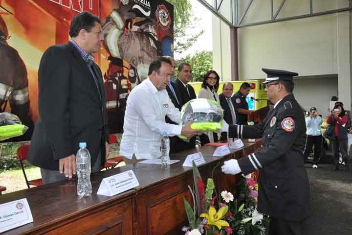 Este sábado el presidente municipal de Morelia Manuel Nocetti Tiznado, entregó estímulos económicos al personal del H. Cuerpo de Bomberos Municipales de la Dirección de Protección Civil de Morelia y en el mismo evento se anunció la inversión de un millón 700 mil pesos para la compra de nuevos equipos; a su vez, los tragahumo solicitaron al edil mejorar los salarios que no se han modificado en los últimos 12 años.