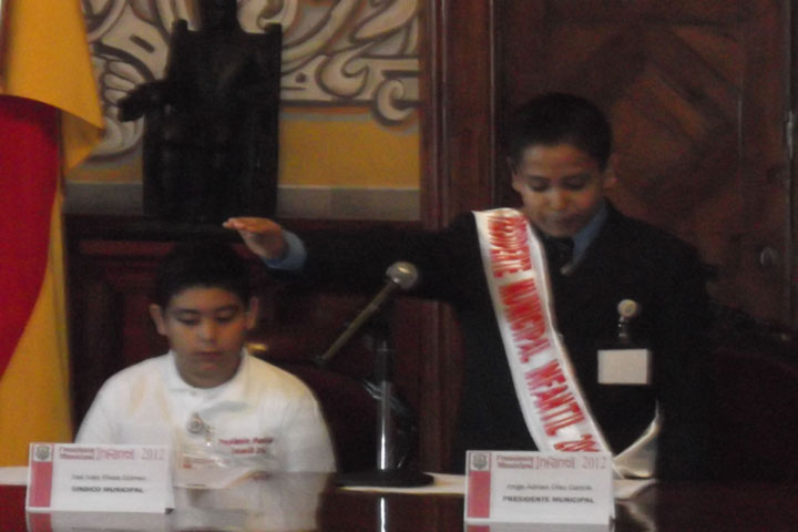 NOTICIAS 27/04/2012Cabildo infantil de Morelia se compromete a fortalecer la seguridad públicaSe realizó la toma de protesta de el Cabildo Infantil Moreliano 2012, en la cual el presidente municipal infantil, Jorge Adrián Díaz García se comprometió a fortalecer la seguridad pública mediante el fortalecimiento de comités de vigilancia, el fomento de la creación del empleo, dar solución a las problemáticas viales con la creación de nuevas vialidades y educación vial, al fomento del turismo con la creación de áreas verdes, de... Ver más...