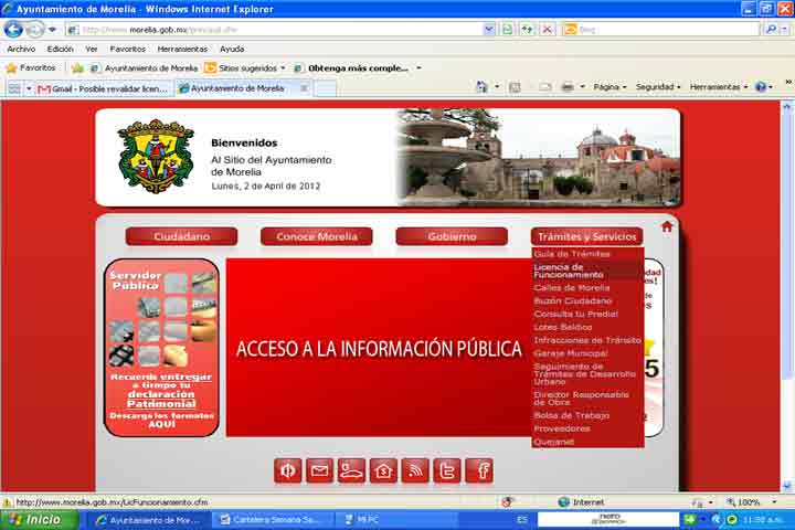 NOTICIAS 02/04/2012Implementa ayuntamiento de Morelia servicio electrónico para revalidación de licencias de giros rojosMás de 4 millones 770 mil pesos han sido recaudados al 2 de abril de 2012 por la revalidación de 3 mil 320 licencias rojas. El Ayuntamiento capitalino continúa la simplificación y modernización de la estructura municipal, al implementar desde hoy y hasta el 30 de abril, un servicio electrónico para que los dueños de giros rojos revaliden sus licencias sin salir de casa y con una promoción extra, ya que quienes realicen su trámite de este... Ver más...