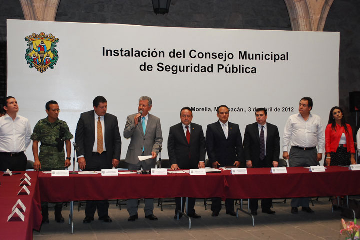 NOTICIAS 03/04/2012Instalan Consejo Municipal de Seguridad Pública del Ayuntamiento de MoreliaAutoridades estatales y municipales de seguridad, así como instituciones y organizaciones sociales y representantes de la sociedad civil tomaron protesta en la instalación del Primer Consejo Municipal de Seguridad Pública, con el que se pretende que entren en operación 150 policías municipales y 40 patrullas.