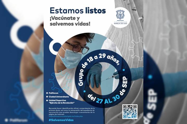NOTICIAS 26/09/2021Poliforum de Morelia afina detalles para segunda Jornada de vacunación a jóvenes de 18 a 29 añosEl próximo lunes 27 de septiembre, volverá a llevarse a cabo la Jornada de Vacunación Nacional contra el COVID-19 para la población de 18 a 29 años de edad, en las instalaciones del Polifórum Centro de Innovación Social de Morelia.