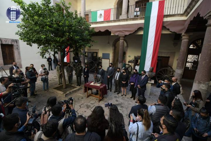 Frente autoridades de los tres niveles de gobierno y representantes de ... Ver más...
