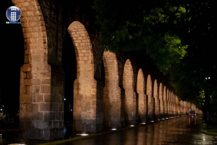 El Gobierno de Morelia, con el fin de optimizar uno de los distintivos más importantes del municipio, concretó el mantenimiento a las luminarias del Acueducto, cuyo funcionamiento adecuado permite proyectar toda la belleza de esta emblemática estructura de cantera.