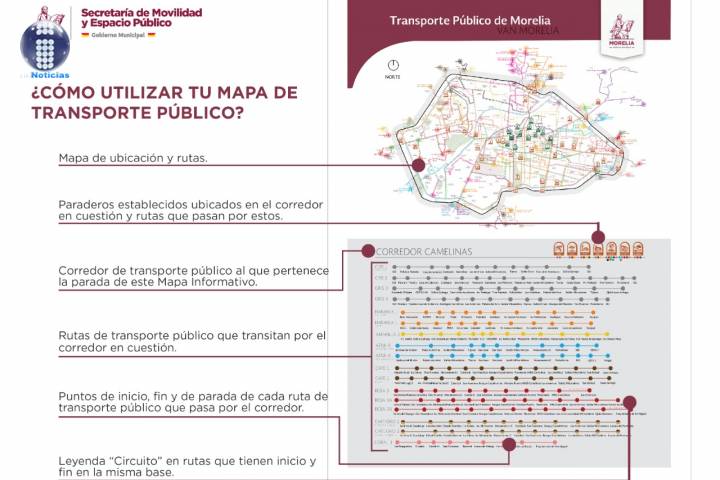 NOTICIAS 06/08/2021Gobierno de Morelia intervendrá paradas de transporte público y colocará mapas de rutas La Secretaria de Movilidad y Espacio Público de Morelia se encuentra trabajando en la colocación de paradas de transporte público y en la creación de un diseño e imagen para el sistema de transporte, esto con la finalidad de dotar de información a la ciudadanía para poder elegir el transporte público colectivo como una alternativa en sus traslados diarios e incentivar el uso del mismo, para de esta forma reducir el número de vehículos e... Ver más...