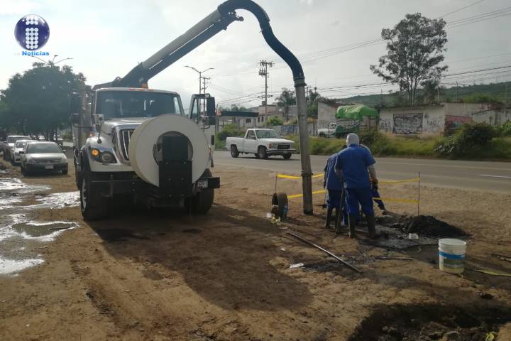 Personal del Departamento de Alcantarillado del OOAPAS trabaja en la revisión y limpie... Ver más...