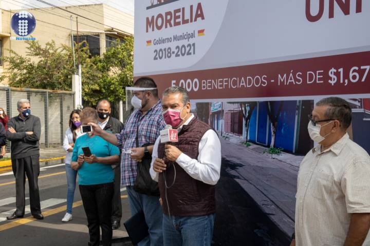 NOTICIAS 08/09/2020Impulsa Raúl Morón regeneración vial al norte de Morelia Como parte de sus esfuerzos por brindar atención a las principales necesidades en colonias populares e impulsar la regeneración vial en todos los sectores de la ciudad, el presidente municipal de Morelia, Raúl Morón Orozco, inauguró la obra de reencarpetamiento de la calle Apóstol de la Raza Maya, en la colonia La Soledad, en la cual se invirtieron alrededor de 4 millones de pesos.