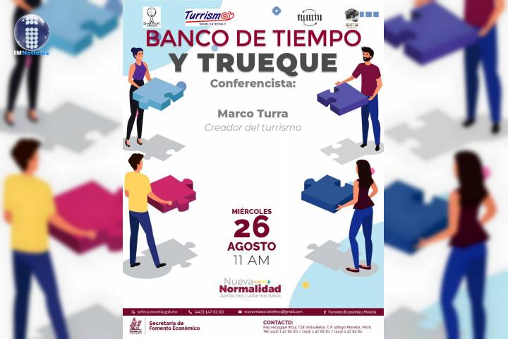 NOTICIAS 25/08/2020Gobierno de Morelia brindará capacitación para negocios de cooperativasPara dar seguimiento a las acciones que implementa la Dirección de Economía Social y Solidaria municipal, mismas que ha instruido el Presidente Municipal, Raúl Morón Orozco, se realizará la capacitación "Banco de Tiempo y trueque", el próximo miércoles 26 de agosto, a las 11:00 horas, misma que será impartida por Marco Turra.