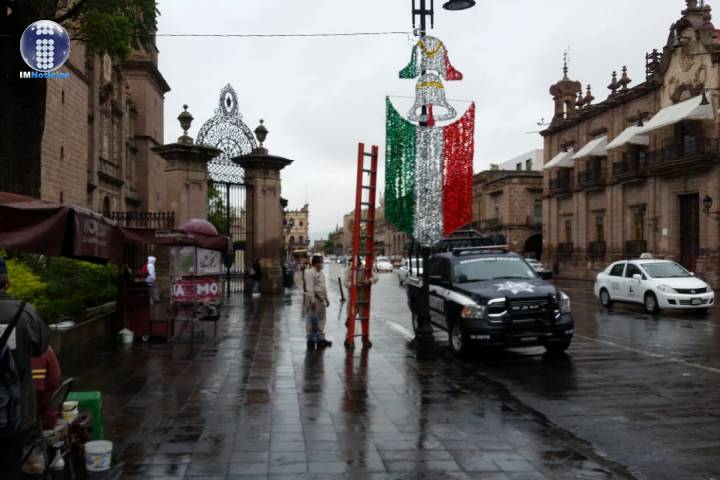 NOTICIAS 28/08/2020Centro Histórico de Morelia se viste de los colores patriosPlazas y calles del Centro Histórico de Morelia lucen ya los colores patrios, gracias a los adornos que el Gobierno Municipal que encabeza el alcalde, Raúl Morón Orozco, ha colocado para enmarcar los importantes hechos históricos que ocurrieron en el mes de septiembre.