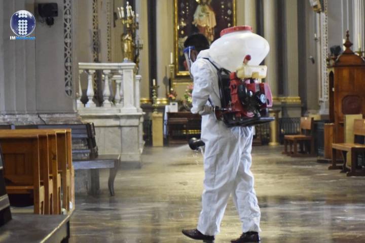 NOTICIAS 10/08/2020Gobierno de Morelia realiza sanitización de CatedralCon el propósito de apoyar a aminorar riesgos de contagio por Covid-19 y posterior a la decisión del arzobispado de Morelia de cerrar puertas de Catedral por una semana, el Gobierno de Municipal que encabeza Raúl Morón Orozco realizó la sanitización del inmueble.