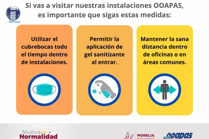 NOTICIAS 27/07/2020Oficinas OOAPAS se desinfectan semanalmenteComo parte de las medidas sanitarias para hacer frente a la contingencia sanitaria por COVID-19, el Organismo Operador de Agua Potable, Alcantarillado y Saneamiento de Morelia (OOAPAS) lleva a cabo la desinfección de oficinas y áreas de Atención al Público de forma semanal, para garantizar la operación de sus instalaciones de forma segura tanto para la ciudadanía como para los trabajadores de la paramunicipal.