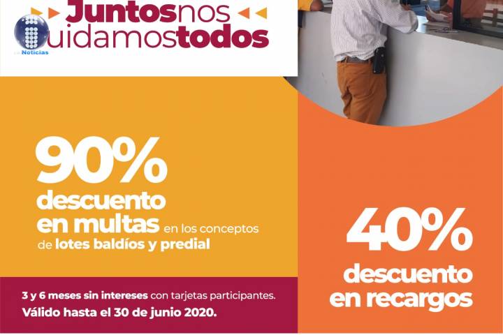 NOTICIAS 20/04/2020Inicia Tesorería Municipal campaña "Juntos nos cuidamos todos"Como parte de las acciones por parte del Gobierno de Morelia para impulsar a la ciudadanía ante la contingencia sanitaria, la Tesorería Municipal, puso en marcha la campaña "Juntos nos cuidamos todos", la cual consiste en importantes descuentos en multas y recargos en el impuesto predial, así como facilidades de pago para los contribuyentes.