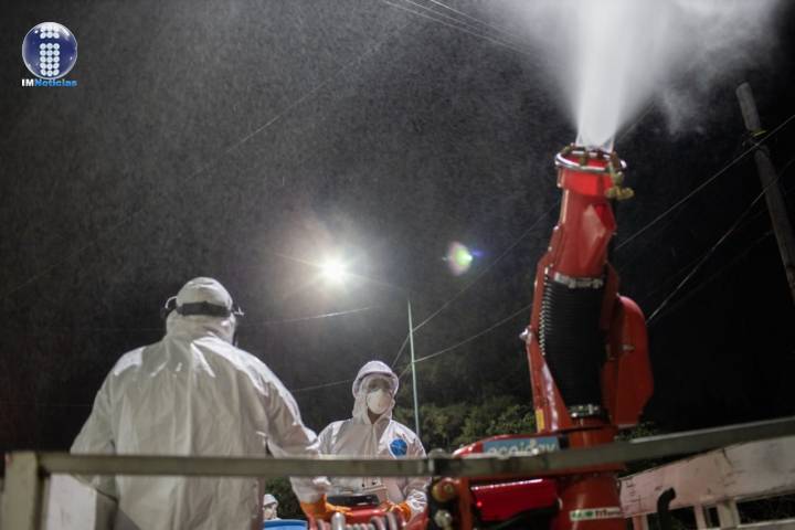 NOTICIAS 24/04/2020Ayuntamiento sanitiza Villas del PedregalEl Gobierno de Morelia, avanza en su estrategia por brindar protección a la ciudadanía ante el COVID-19, al realizar una sanitización en el Fraccionamiento Villas del Pedregal, con la maquinaria recién adquirida que permite la aspersión de un líquido a base de cloro a gran velocidad, hecho que se desarrolló en las primeras horas de este viernes.