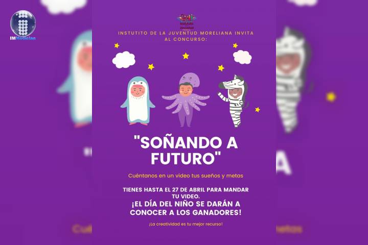 NOTICIAS 24/04/2020Con concurso "Soñando a futuro", celebrará IJUM a los niñosEl Instituto de la Juventud Moreliana (IJUM), celebrará a los niños y niñas con el concurso "Soñando a futuro", donde podrán desarrollar su imaginación a partir de un video creativo donde compartirán lo que sueñan y piensan sobre el futuro; todos los videos serán publicados en las redes sociales de la dependencia el martes 28 de abril y quien obtenga más reacciones será el ganador.