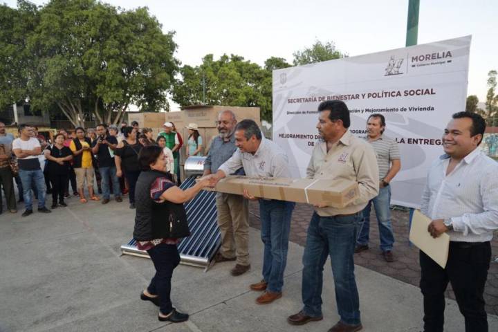 NOTICIAS 08/08/2019Trabaja Gobierno de Morelia para dignificar las viviendas morelianasEn busca de mejorar y dignificar las viviendas de familias en condición de marginación del municipio, en el primer año de gobierno del Presidente Raúl Morón Orozco, la Secretaría de Bienestar y Política Social a través de la Dirección de Fomento a la Regularización y Mejoramiento de Vivienda, ha entregado 829 calentadores solares, a igual número de familias morelianas