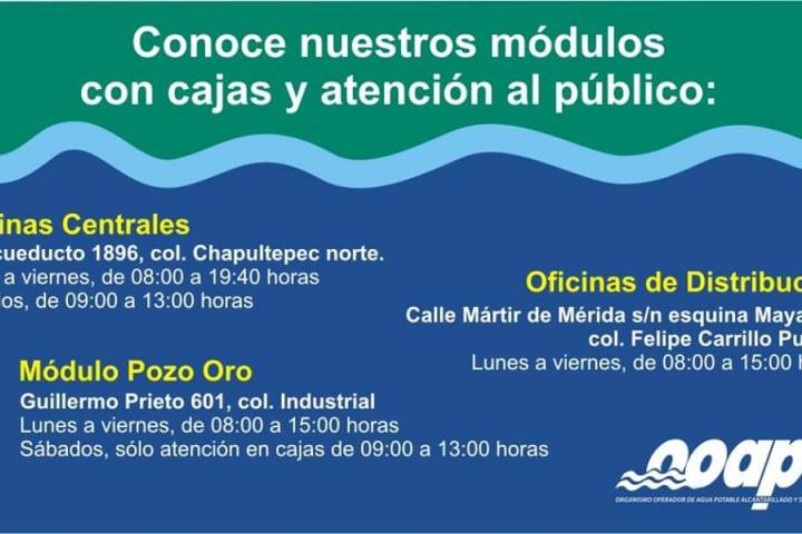 NOTICIAS 21/06/2019Aviso sobre dos módulos de pago OOAPASEl Organismo Operador de Agua Potable Alcantarillado y Saneamiento de Morelia (OOAPAS) informa que a partir del lunes 24 de junio se realizarán las siguientes modificaciones en la atención que brindan dos módulos de pago de esta paramunicipal.