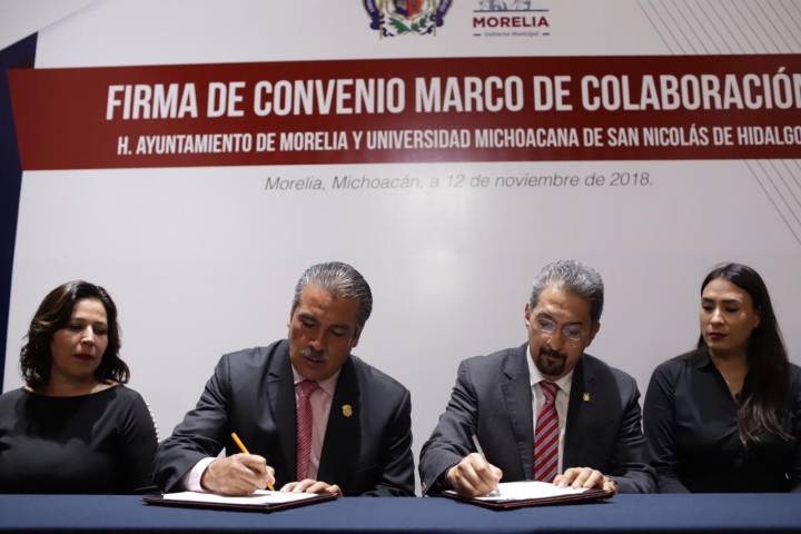 Con el objetivo de vincular el conocimiento científico, capacidad técnica y actividad académica, así como la participación estudiantil nicolaita en los principales sectores del municipio, el Ayuntamiento de Morelia y la Universidad Michoacana firmaron un convenio de colaboración, mismo que fue signado por el presidente municipal, Raúl Morón Orozco y el rector de la institución académica, Medardo Serna González.