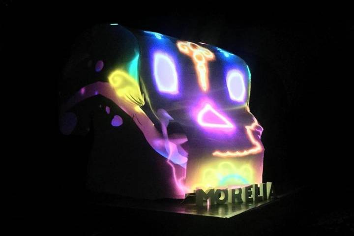 NOTICIAS 03/11/2018Abierto al público Mapping de Cráneo MonumentalEn el marco de la celebración de Noche de Muertos en la ciudad, el Ayuntamiento de Morelia a través de su Secretaría de Turismo invita a disfrutar del espectáculo de videomapping sobre un cráneo monumental el cual fue instalado en el patio central de Palacio Municipal y estará vigente hasta el 10 de noviembre con un horario de 19:00 a 21:00 horas.