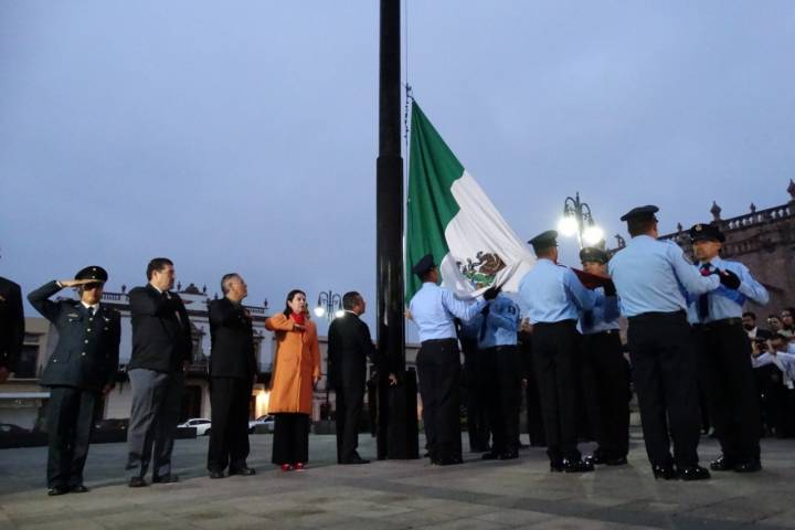 De acuerdo con el protocolo que se realiza cada año en memoria de las víctimas del sismo, la Banda de Guerra de la Coordinación de Protección Civil Estatal entonó el toque de silencio y el Hi... Ver más...