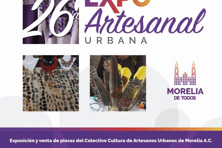 NOTICIAS 15/08/201826 Expo Artesanal Urbana de Morelia arranca este jueves En la dinámica de seguir ofreciendo eventos plurales que fomentan la vocación cultural de la ciudad, este jueves 16 de agosto dará inicio la 26 Expo Artesanal Urbana de Morelia, que tendrá vigencia hasta el días 26 del presente mes en el Portal Ex Convento de San Francisco, en las inmediaciones del Instituto del Artesano Michoacano.