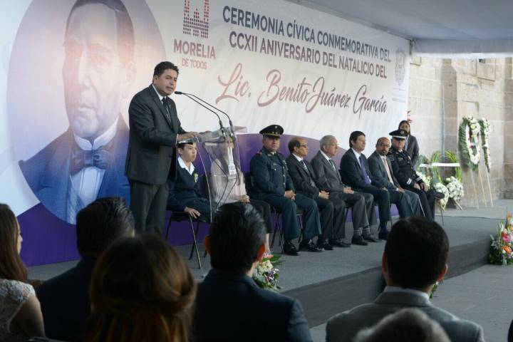 NOTICIAS 21/03/2018Ayuntamiento de Morelia conmemora el CCXII Aniversario del Natalicio de Benito Juárez Con la finalidad de recordar a los héroes de México y dar seguimiento a su importante legado, esta mañana el Ayuntamiento de Morelia encabezado por el Presidente Municipal, Alfonso Martínez Alcázar, llevó a cabo el Izamiento de la Bandera Nacional y el Acto Conmemorativo del CCXII Aniversario del Natalicio del Licenciado Benito Juárez.