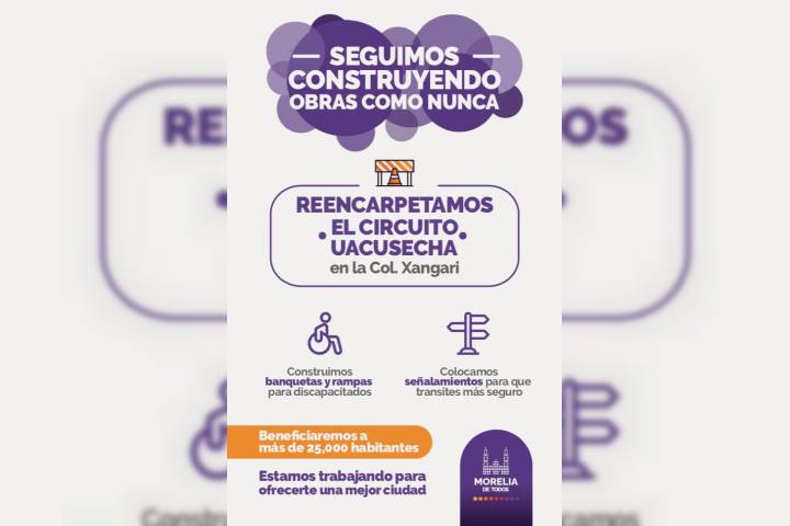 Con el objetivo de mejorar como nunca las vialidades de Morelia, la Administración Municipal encabezada por el Alcalde Alfonso Martínez Alcázar iniciará este lunes la obra de Reencarpetamiento del Circuito Uacusecha en la colonia Xangari, donde se verán beneficiados miles de ciudadanos que a diario circulan por la concurrida zona.