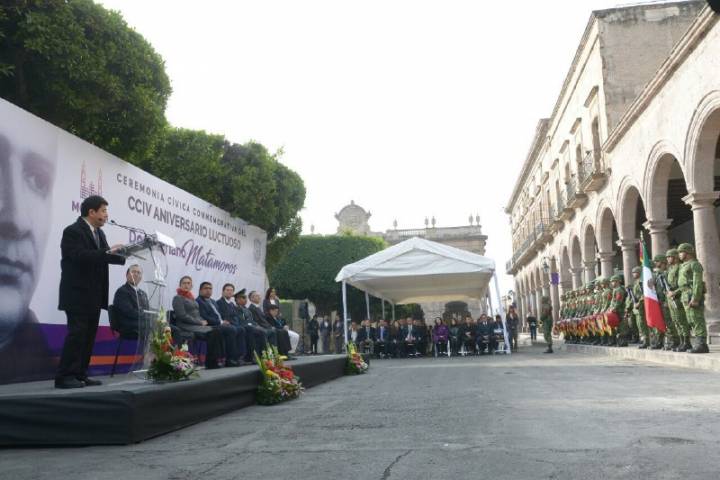 NOTICIAS 03/02/2018Alfonso Martínez encabeza "CCIV Aniversario Luctuoso de Don Mariano Matamoros" con un llamado al bien comúnCon un llamado al compromiso con la sociedad en beneficio del bien común, el Alcalde Alfonso Martínez Alcázar encabezó la Ceremonia Cívica Conmemorativa del CCIV Aniversario Luctuoso de Don Mariano Matamoros, sacerdote y patriota mexicano que luchó por la Independencia de México a las órdenes de José María Morelos y Pavón, y fue honrado al pie del portal en donde fue fusilado en 1814.