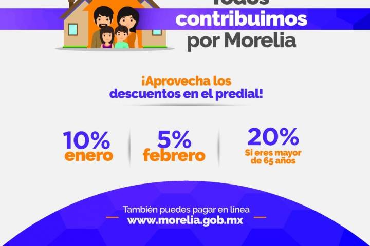 NOTICIAS 21/01/2018Morelianos dan respuesta favorable a descuentos en pago de PredialCumpliendo con los objetivos de contar con finanzas sanas en el municipio y brindar las facilidades a los ciudadanos para que realicen sus pagos correspondientes, el Ayuntamiento de Morelia ha tenido una recaudación favorable del impuesto Predial durante la primera quincena del año, a través del descuento del 10 por ciento que seguirá disponible todo el mes de Enero y será del 5 por ciento en Febrero.