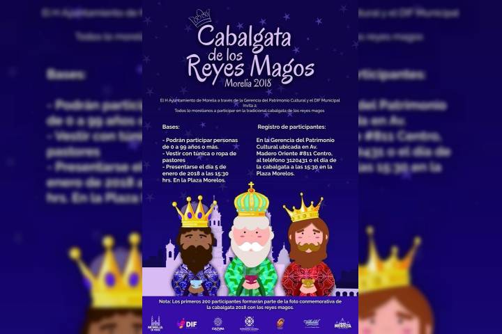 NOTICIAS 04/01/2018Invita Ayuntamiento a morelianos a participar en la Cabalgata de Reyes Magos 2018