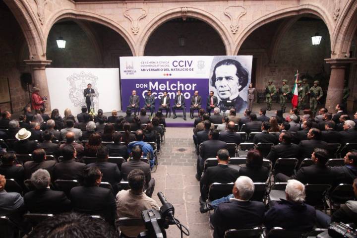 El Presidente Municipal de Morelia, Alfonso MartÃnez Alcázar, encabezó la mañana de este sábado, la Ceremonia CÃvica conmemorativa del CCIV Aniversario del Natalicio de Melchor Ocampo.