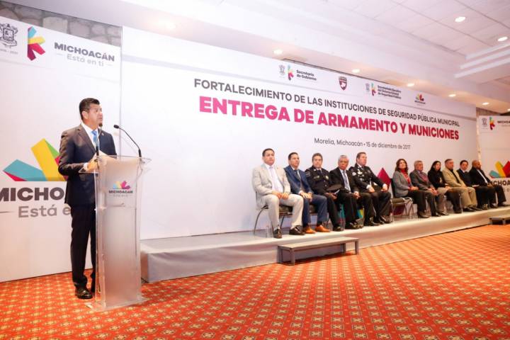 NOTICIAS 15/12/2017Con entrega de armamento y municiones, Gobierno de Michoacán fortalece instituciones de seguridad Gracias a la gestión ante la SecretarÃa de la Defensa Nacional (Sedena), el Gobierno del Estado, a través de las secretarÃas de Gobierno y de Seguridad Pública (SSP), asà como del Secretariado Ejecutivo del Sistema Estatal de Seguridad Pública (SESESP), entregó hoy armas de fuego, cargadores y municiones a policÃas de 12 municipios de Michoacán, con una inversión de 3 millones 618 mil pesos.