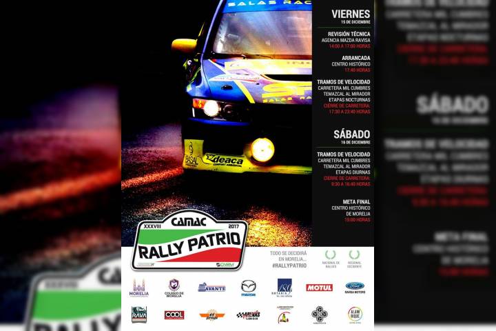 NOTICIAS 15/12/2017Morelia se prepara para recibir el "Rally Patrio" El "Rally Patrio 2017" llegará este fin de semana a la Capital Michoacana durante los dÃas viernes 15 y sábado 16 de diciembre, teniendo como meta en el segundo dÃa el Centro Histórico de Morelia.
