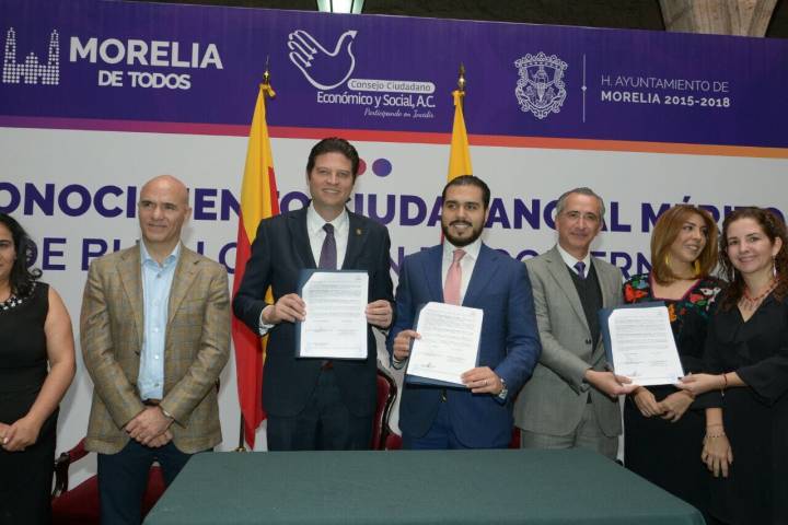 NOTICIAS 02/12/2017Recibe Alfonso reconocimiento por buena gestión de Gobierno Al evaluar y conocer las buenas prácticas y gestión del Ayuntamiento de Morelia que encabeza el Presidente Municipal, Alfonso Martínez Alcázar, el Consejo Ciudadano Económico y Social de León, Guanajuato decidió entregar el "Reconocimiento al mérito de Buena Gestión de Gobierno" al Alcalde en una ceremonia montada en el patio principal del Palacio Municipal.