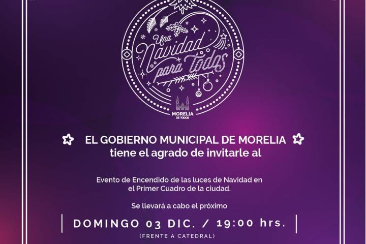 NOTICIAS 03/12/2017Todo listo para la iluminación del Centro Histórico Con el fin de fortalecer la vocación turística de la ciudad, el Ayuntamiento de Morelia a través de la Secretaría de Servicios Públicos Municipales tendrá la música del Coro Peregrino y llenará de luces el Centro Histórico, dicho encendido contará con todos los elementos navideños que tanto gustaron a los habitantes y visitantes, y comenzarán al filo de las 19:00 horas, horario en el cual el Alcalde, Alfonso Martínez Alcázar encende... Ver más...