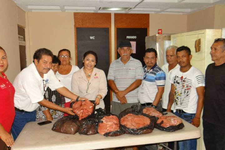NOTICIAS 24/10/2017Pescadores donan producto al DIF Municipal para apoyar a sectores vulnerablesLa presidenta del DIF Municipal, Lupita Chan Panti, recibió de manos del presidente del sector pesquero, Casto García Serna, la donación de 80 kilos de filete de pescado, para que a través de esta beneficencia se destinen a personas en situación vulnerable dentro del municipio.