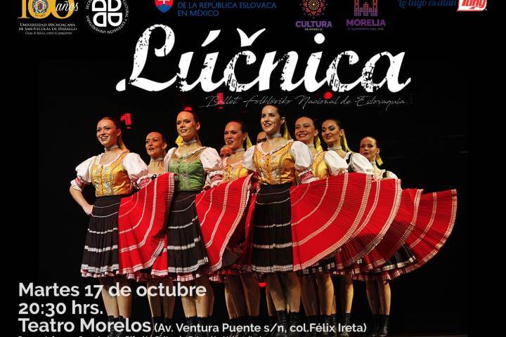 NOTICIAS 16/10/2017SecretarÃa de Cultura de Morelia contribuye en la atracción de espectáculos de alto nivel artÃstico En la tarea de atraer eventos de talla internacional, la SecretarÃa de Cultura de Morelia y la Universidad Michoacana de San Nicolás de Hidalgo, invitan a asistir al espectáculo de alto nivel artÃstico con la presentación del Ballet Folclórico Nacional de Eslovaquia "Lú?nica" el próximo 17 de octubre del presente año, el cual tendrá lugar en el Teatro Morelos al filo de las 20:30 horas.