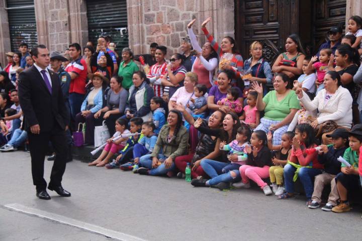 En este acto cívico militar fue testigo e invitado especial el Secretario de Gobernación, Miguel Ángel Osorio Chong, quien en compañía del Gobernador, Silvano Aureoles Conejo y desde el balcón princi... Ver más...