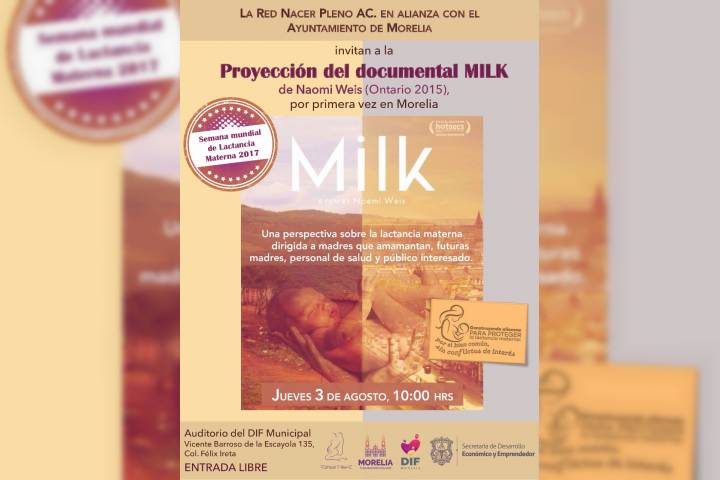 NOTICIAS 27/07/2017DIF Morelia ofrece a la ciudadanía información educativa sobre la maternidadEl Sistema DIF Morelia, a través de la Asociación Civil "Red Nacer Pleno", invita a la ciudadanía en general a disfrutar del documental "Milk", mismo que será proyectado el próximo jueves 3 de agosto en el auditorio del DIF Municipal a partir de las 10:00 horas.